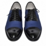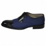 Pantofi barbatesti pentru ceremonie, lucrati manual din piele naturala neagra si lana albastra aplicata.